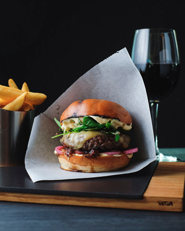 Neljän ruokalajin menu Burgers & Wine on bistron ja burgerpaikan yhdistelmä ripauksella fine diningia. Parhaista raaka-aineista valmistetut burgerit tarjoillaan yhdessä laadukkaiden viinien ja cocktailien kanssa. Katso ajankohtainen menu www.burgersandwine.fi ja varaa pöytä lisätiedoilla "Tripla Joulu 2025".
