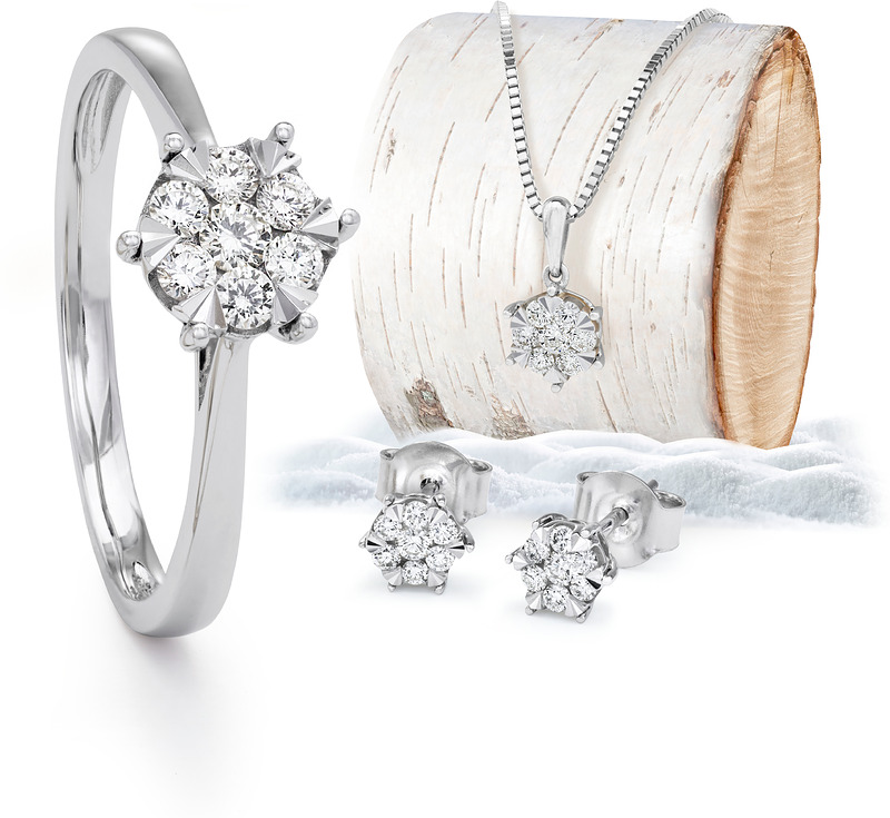 Vuoden joululahja 2025! Timanttisormus yht. 0,20ct 699 € (ovh. 899 €). Timanttikorvakorut yht. 0,20ct 499 € (ovh. 649 €). Timanttiriipus yht. 0,20ct 359 € (ovh. 459 €), ketju ei sisälly hintaan.