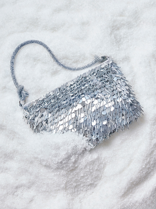 Säihkettä iltaan. Hopeinen glitter-laukku kruunaa juhlatyylin – pieni, mutta täynnä näyttävyyttä.