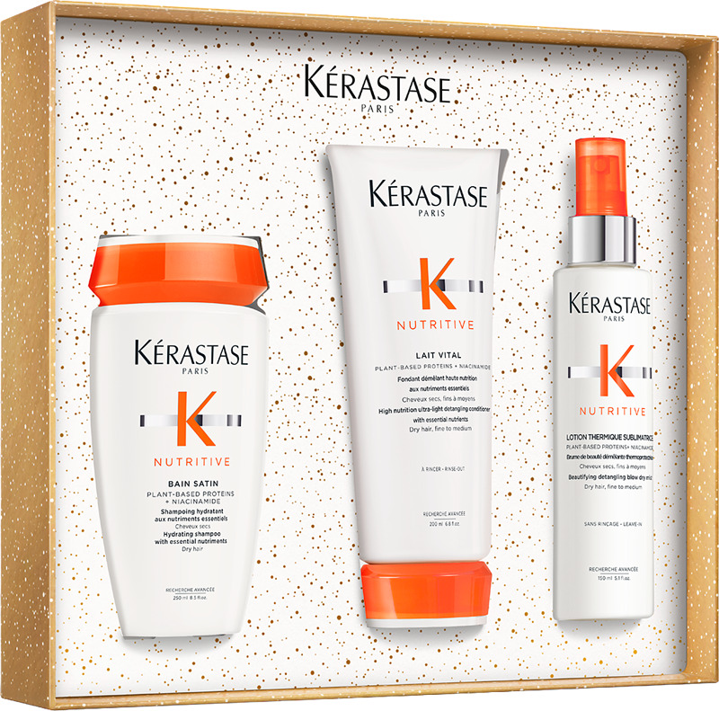 Kérastase – ylellinen lahja hiusten hemmotteluun Täydellinen lahjapakkaus sinulle tai läheisellesi, joka arvostaa hiustenhoidon huippulaatua. Pakkaus sisältää shampoon, hoitoaineen ja jätettävän hoitotuotteen – kaikki, mitä tarvitset silkkisen pehmeisiin, hyvinvoiviin hiuksiin. Kérastase tekee jokaisesta hiuspäivästä juhlan. Saatavilla suosituissa sarjoissa, Gloss Absolu, Genesis, Curl Manifesto, Elixir Ultime, Nutritive, valikoima saattaa vaihdella