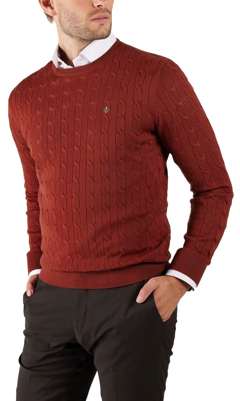 Pehmeästä merinovillasta valmistettu preppy-palmikkoneule, jossa pyöreä pääntie. Neuleessa on pääntiessä, hihansuissa ja helmassa ribbiresori. Rinnassa brodeerattu Morris-logo.